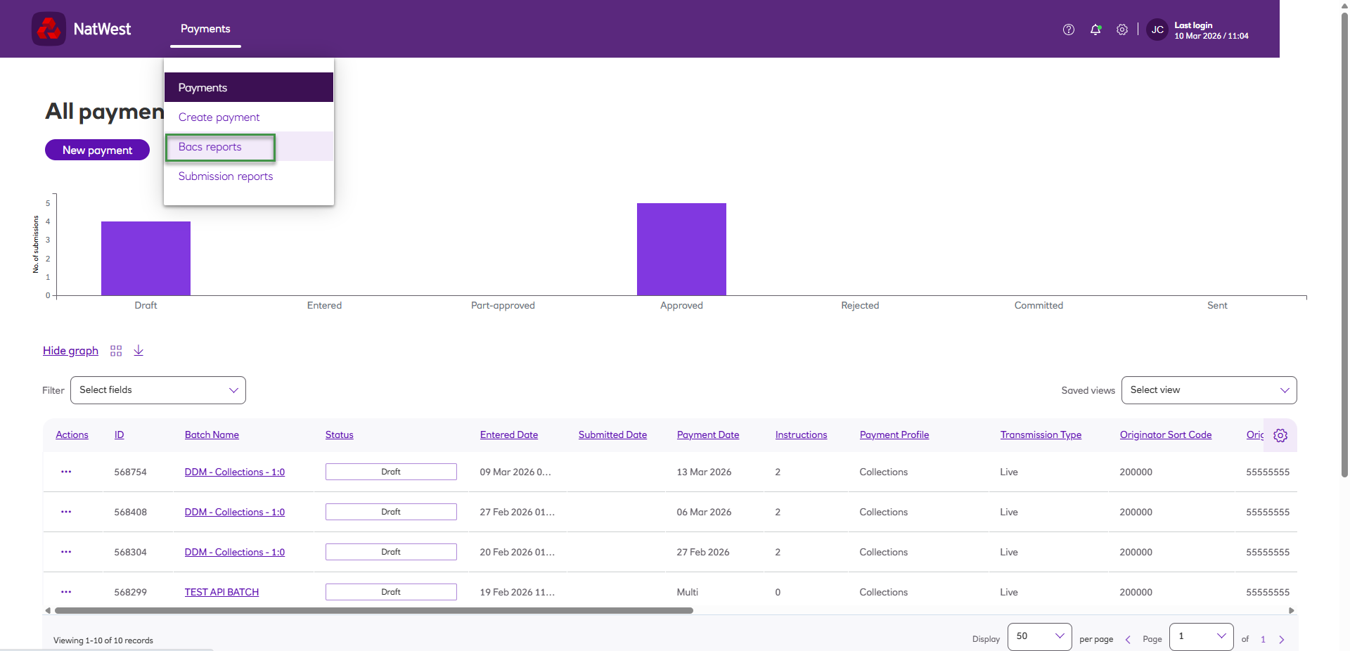 Your Bacs reports will be displayed for review.