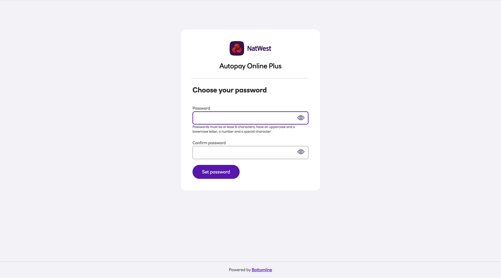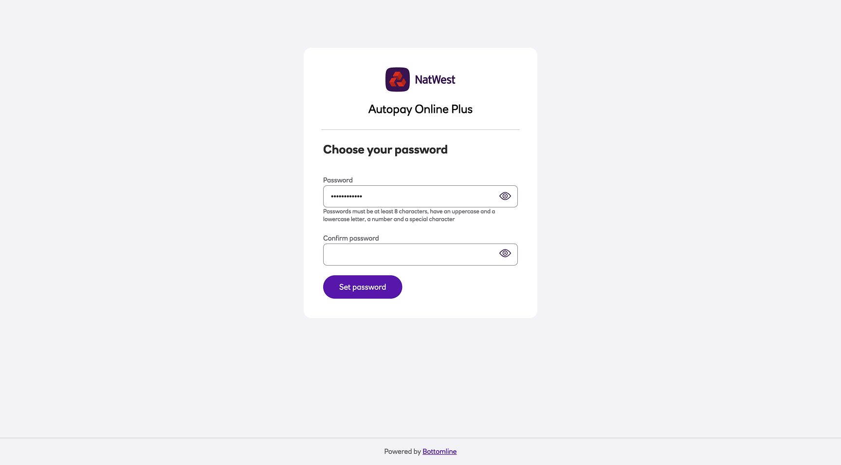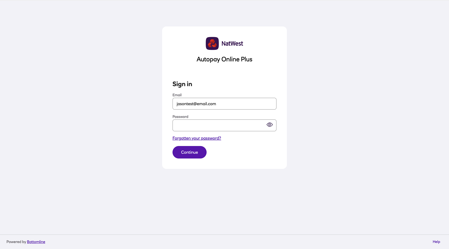 Once your setup is complete you will be presented with the screen to log in to Autopay Online Plus.