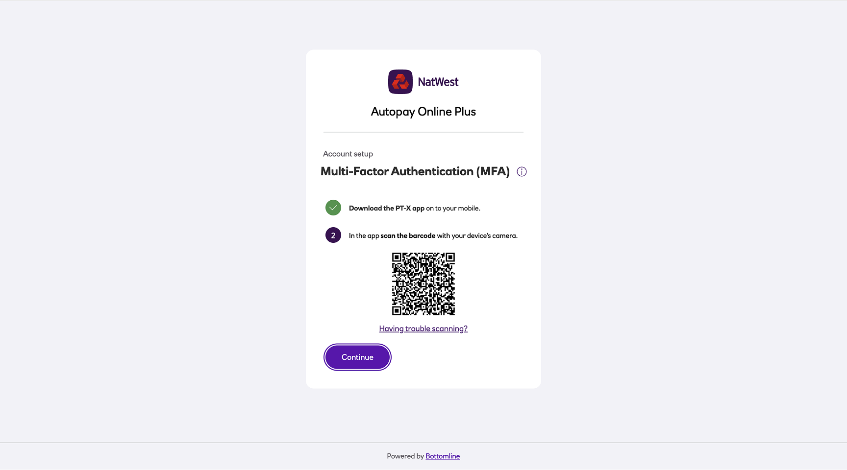 Note: If you are unable to scan the barcode you can use the Having trouble scanning link.