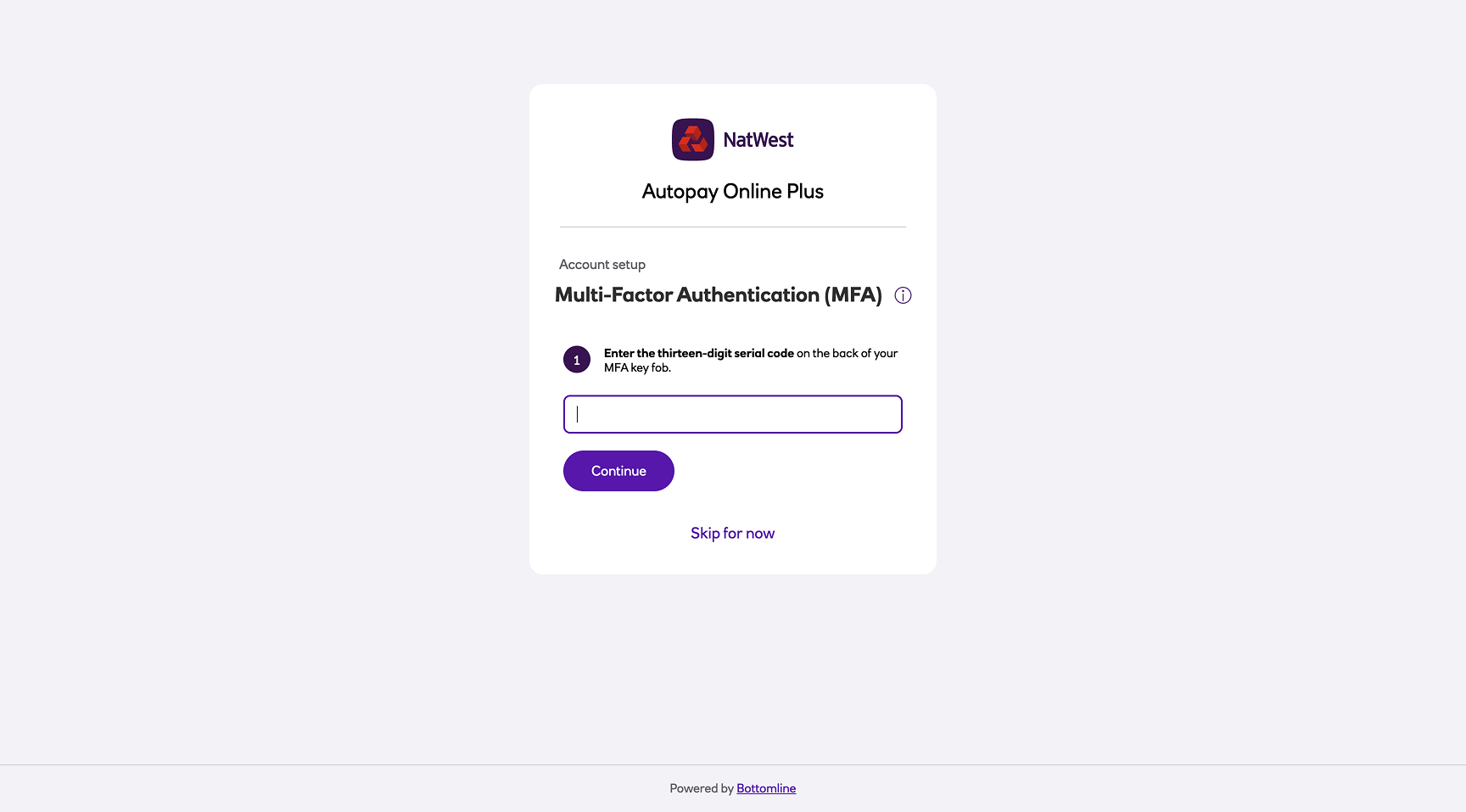 Enter the thirteen digit serial code on the back of your MFA key fob.