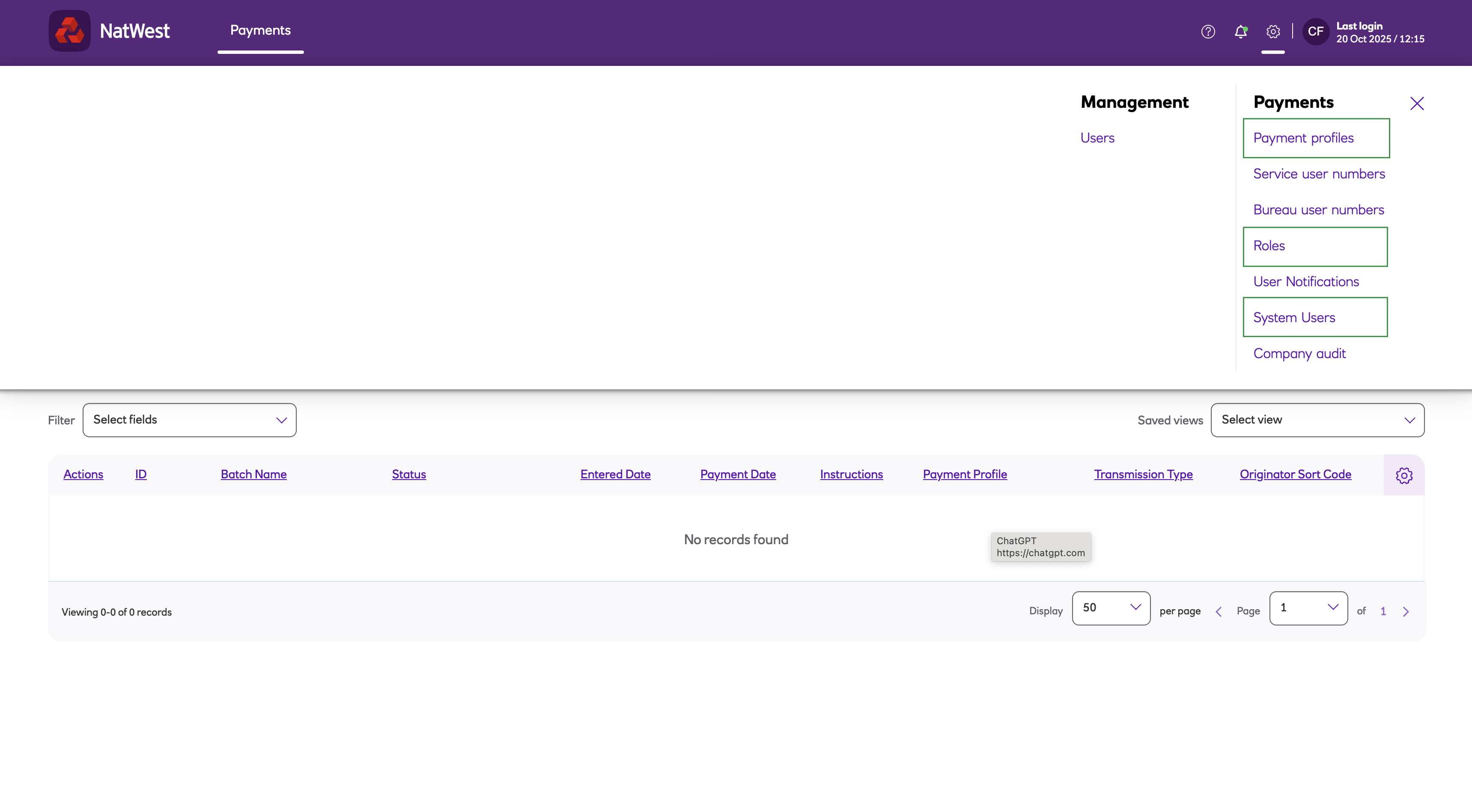 This section contains details for managing users from the Management menu. For system users (accessible from the Payments menu), see the section below.