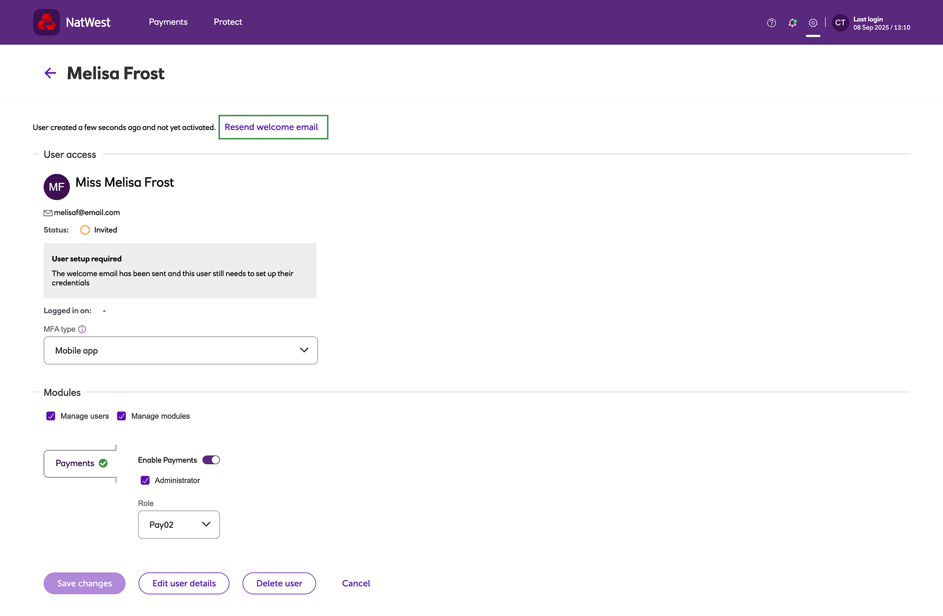 Resending a user's 'Welcome' email